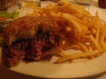 Al morderla, los jugos de la carne empapan al pan brioche volviéndolo una plataforma inservible para una carne de 8 y ½ onzas y una comida de difícil maniobrabilidad. El sabor del solomo madurado en seco hace que sea una hamburguesa para el deleite sin queso o tocineta. La verdad cualquier sabor adicional desviaría la atención que esta genial concepción se merece.