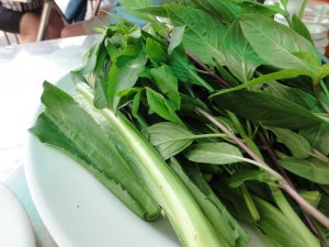 Acompañantes del Pho del Sur: Hojas de culantro, menta y albahacas varias