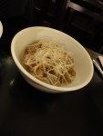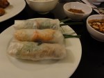 Obviamente tenía que pedir Pho. Estaba muy rico, pero probé mejores en la calle. En el pasado he comentado sobre lo colectiva y comunal de la cocina vietnamita. Por lo tanto, los tentempiés o canapés para compartir fueron los que me enamoraron de este lugar. Los spring rolls de oreja de cerdo fueron mis favoritos. Los crocantes cartílagos contrastaban con lo delicado y suave del papel y los fideos de arroz: una oposición de texturas perfectamente lograda. Casi todos los entremeses se acompañaban con una salsa a base de salsa hoisin y pasta de maní; muy espesa y fuerte logrando así balancear lo sutil de cada rollito. Por otro lado, preparaciones más pesadas como las crujientes torticas fritas con camarones incrustados venían servidas con ligeras y cortantes salsas a base de jugo de limón, vinagre de arroz, salsa de pescado, ajo y chiles.
