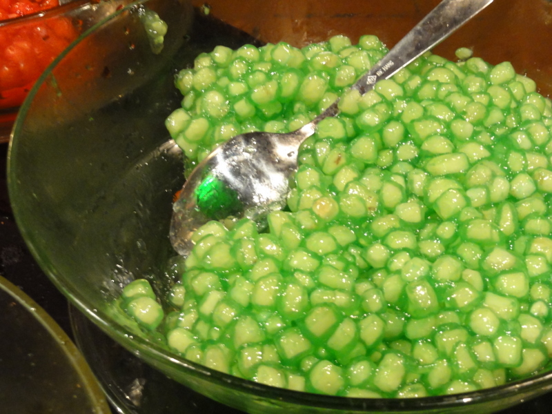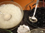 Todos los platos que pedí fueron una agradable sorpresa. Desde las Alitas de Pollo con Salsa de Ajo pasando por el dulce Arroz Aglutinado con Ajonjolí y Coco Rallado, hasta los coloridos y pegajosos postres a base de gelatinosas perlas de yuca fueron una deliciosa aventura gastronómica. Sin embargo, sólo por el hecho de observar a estas cocinas en acción, en medio del servicio, y admirar los rápidos y precisos movimientos de los hábiles cocineros detrás de indomables nubes de vapor hace que la visita a este restaurante sea una experiencia inolvidable.
