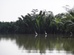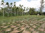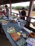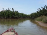 Después del mercado nos embarcamos rio arriba hacia una granja para comprar los vegetales para nuestra clase. El sol ya estaba sobre nosotros y la humedad ya se sentía goteando debajo de nuestras camisas. La escena de una interminable muralla de palmeras que escoltaba a un caño marrón verdoso junto al eco del motor a diesel del bote en medio de Vietnam fue un fácil déjà vu donde no pude evitar sentirme en uno de los capítulos de “Misión del Deber”. Al cabo de un par de horas llegamos a una pequeña choza donde una pareja de campesinos nos recibió con un par de tostadas con salsa soya y una enorme sonrisa. Luego de un orgulloso tour por su huerta de tres tipos de albahaca, limoncillo, menta y lechugas, nos entregaron un bulto de arroz aún con su cáscara o salvado y se despidieron con la misma monumental sonrisa.