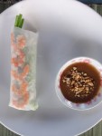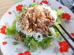 Preparamos además de los spring rolls, una versión del pancake de camarones que había probado en Hue, esta vez envuelto en papel de arroz; después vino el Pho, para finalizar con una refrescante ensalada de carne de res marinada en salsa de pescado, soya, azúcar, ajo, ajíes y limón, sobre una cama de lechuga y delgados fideos de arroz.